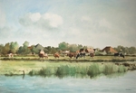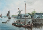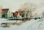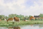 Aquarellen van landschappen, dorpsgezichten en maritiem getinte onderwerpen.